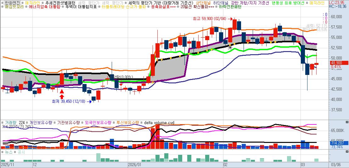 - 세력이 물량을 매집한 평균 가격입니다. 주가가 이 선 근처까지 내려오면 **'강력한 매수 기회'**가 됩니다.
